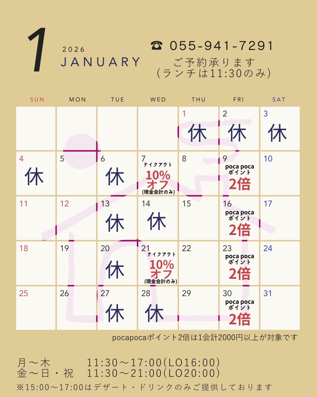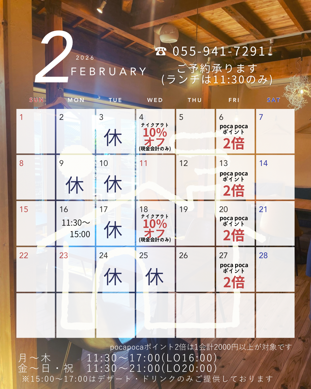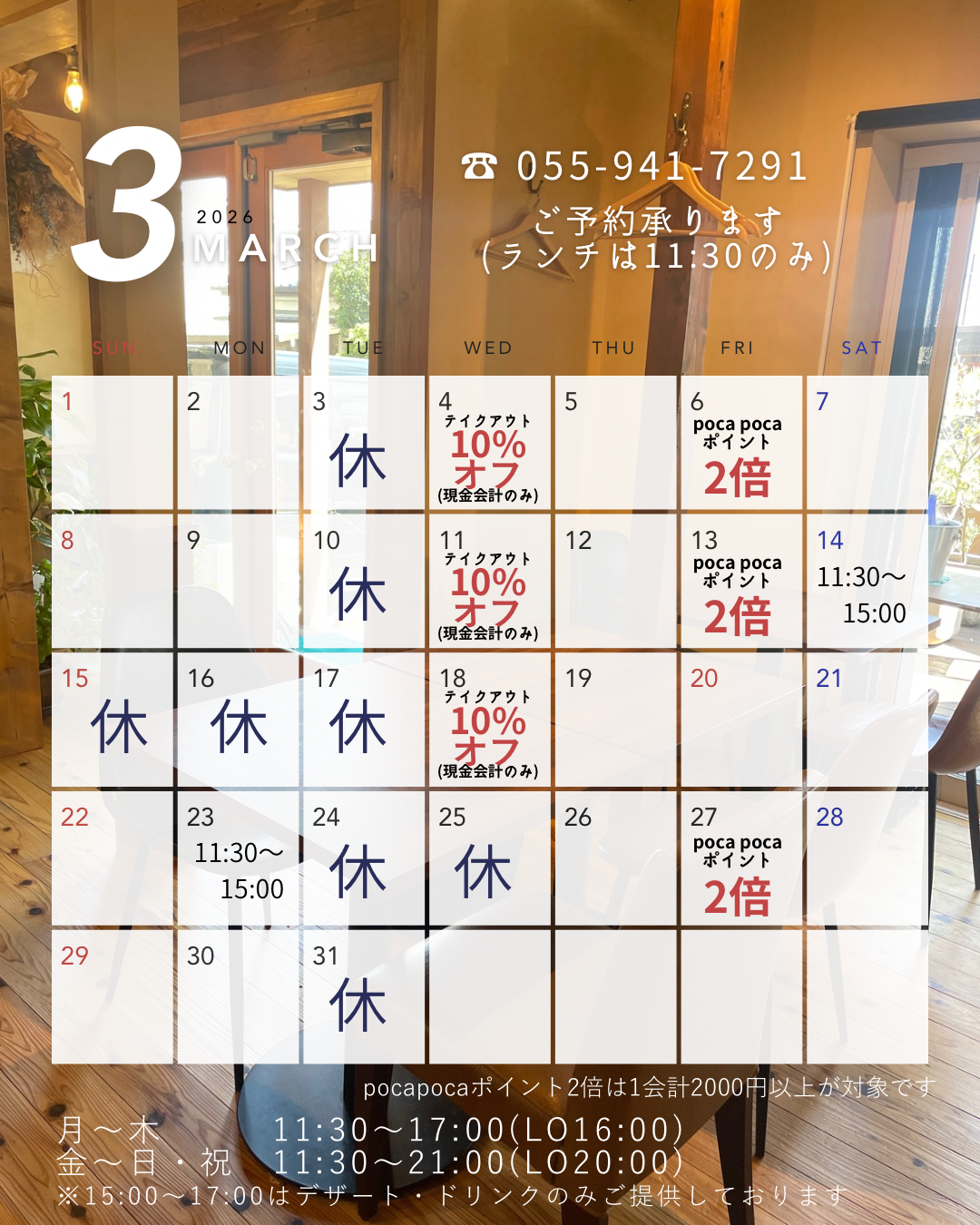 営業時間:月~木 11:30-17:00 金~日・祝日 11:30-21:00 (L.O. 20:00)